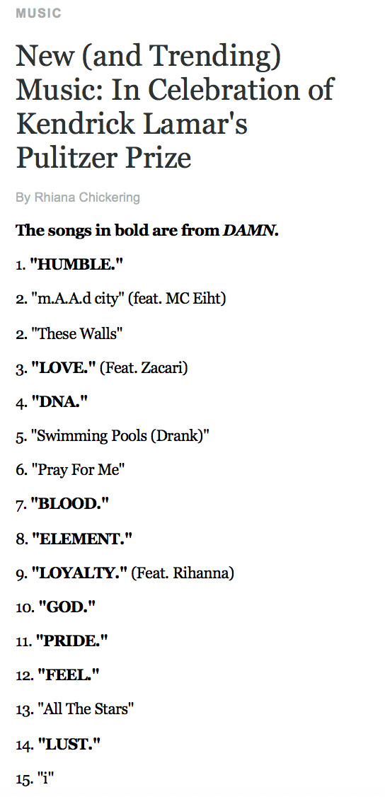 April 20, 2018 - Kendrick Lamar Pulitzer Prize Edition